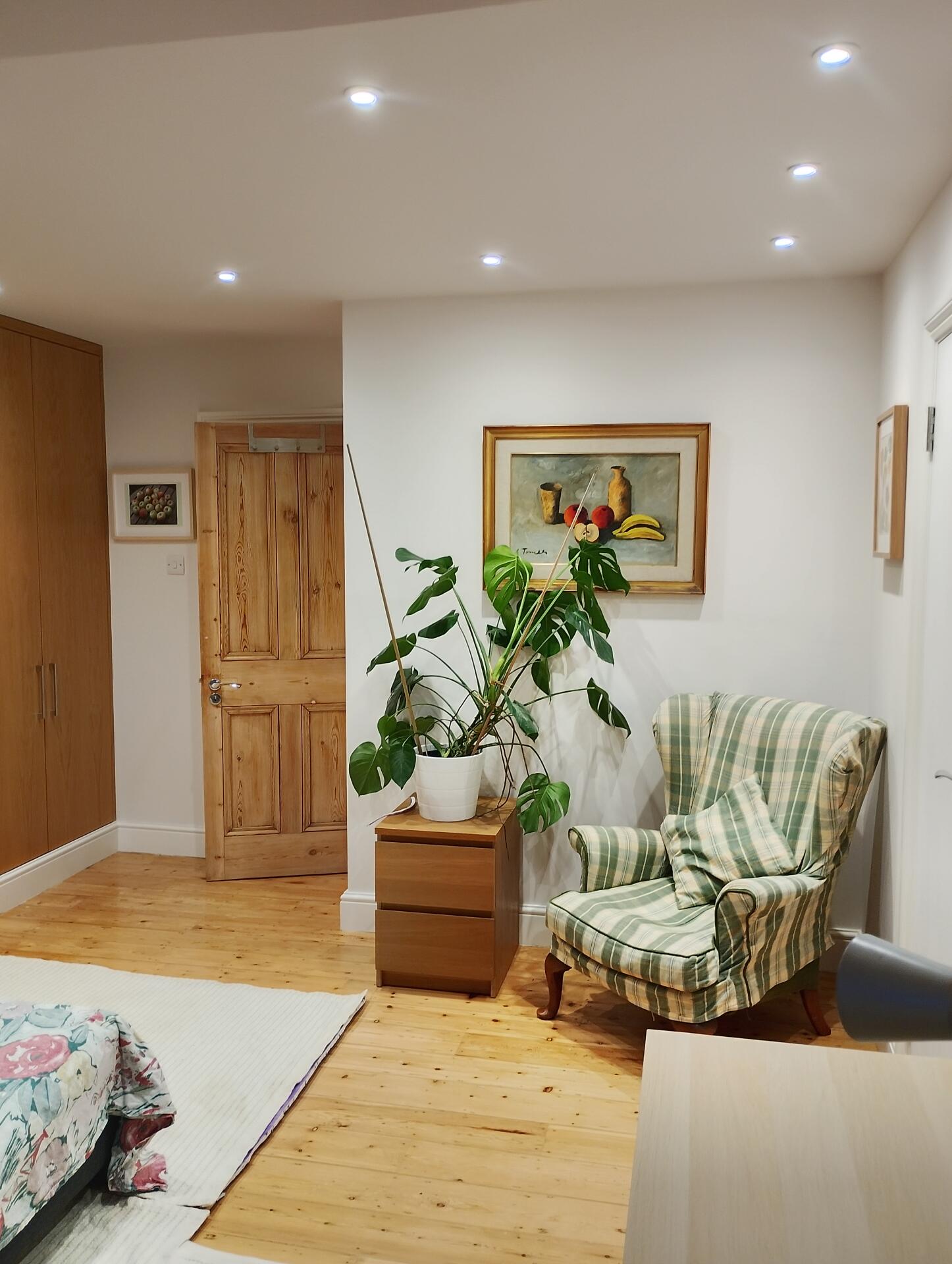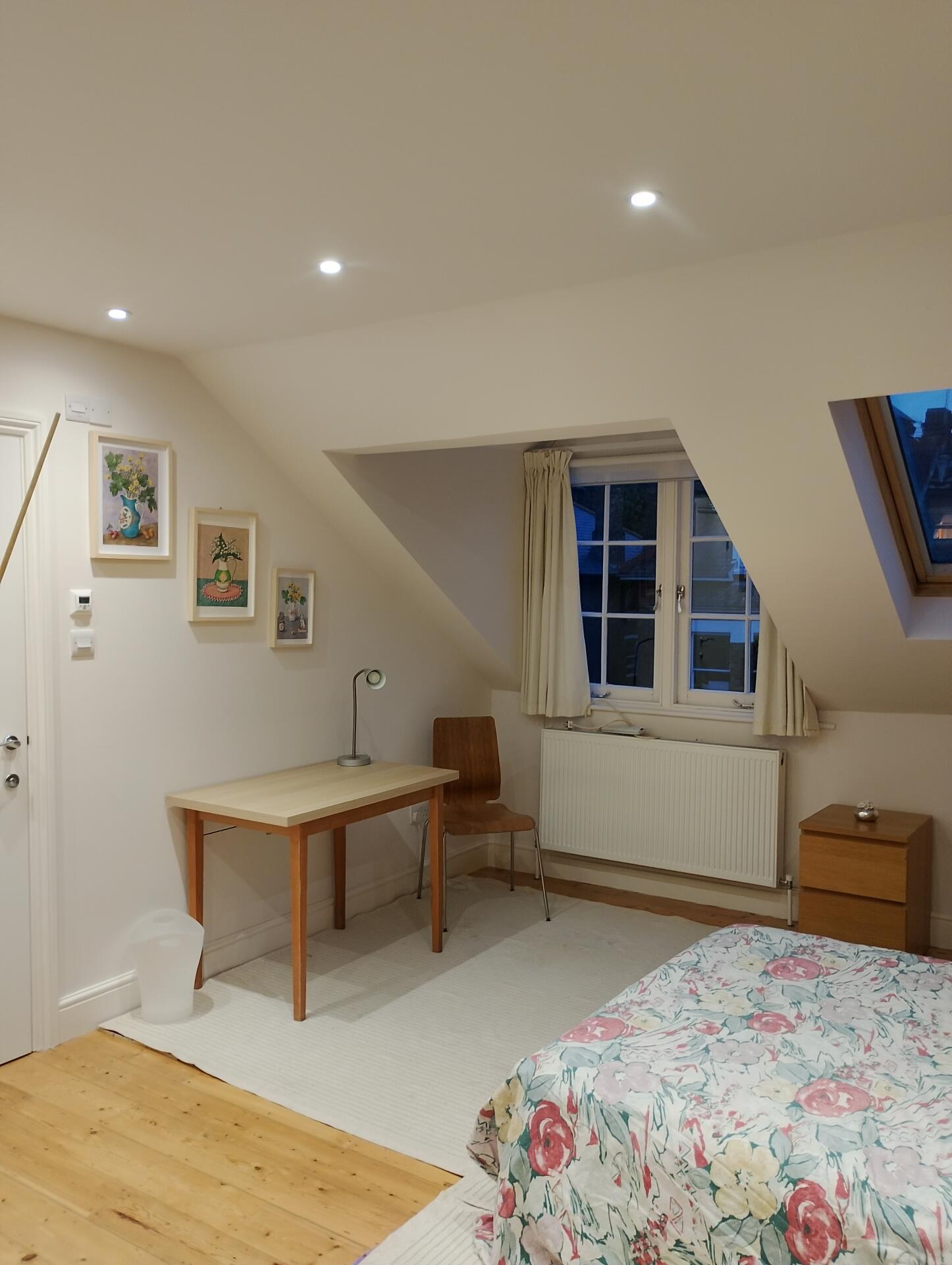 Top of the house, very large bedroom, en suite, polished wooden floors, vast amount of wardrobe space, brand new bathroom with bath, shower and all singing, all dancing toilet, instructions in Japanese. Inclusive of all household bills, I provide bed linen and towels. Speak English & Italian. You share your kitchen with one other lodger.
