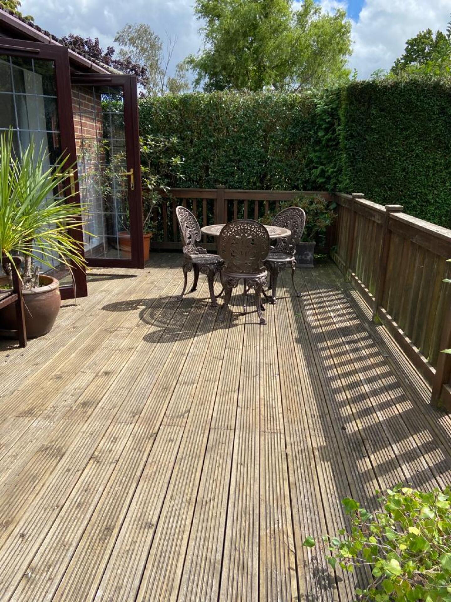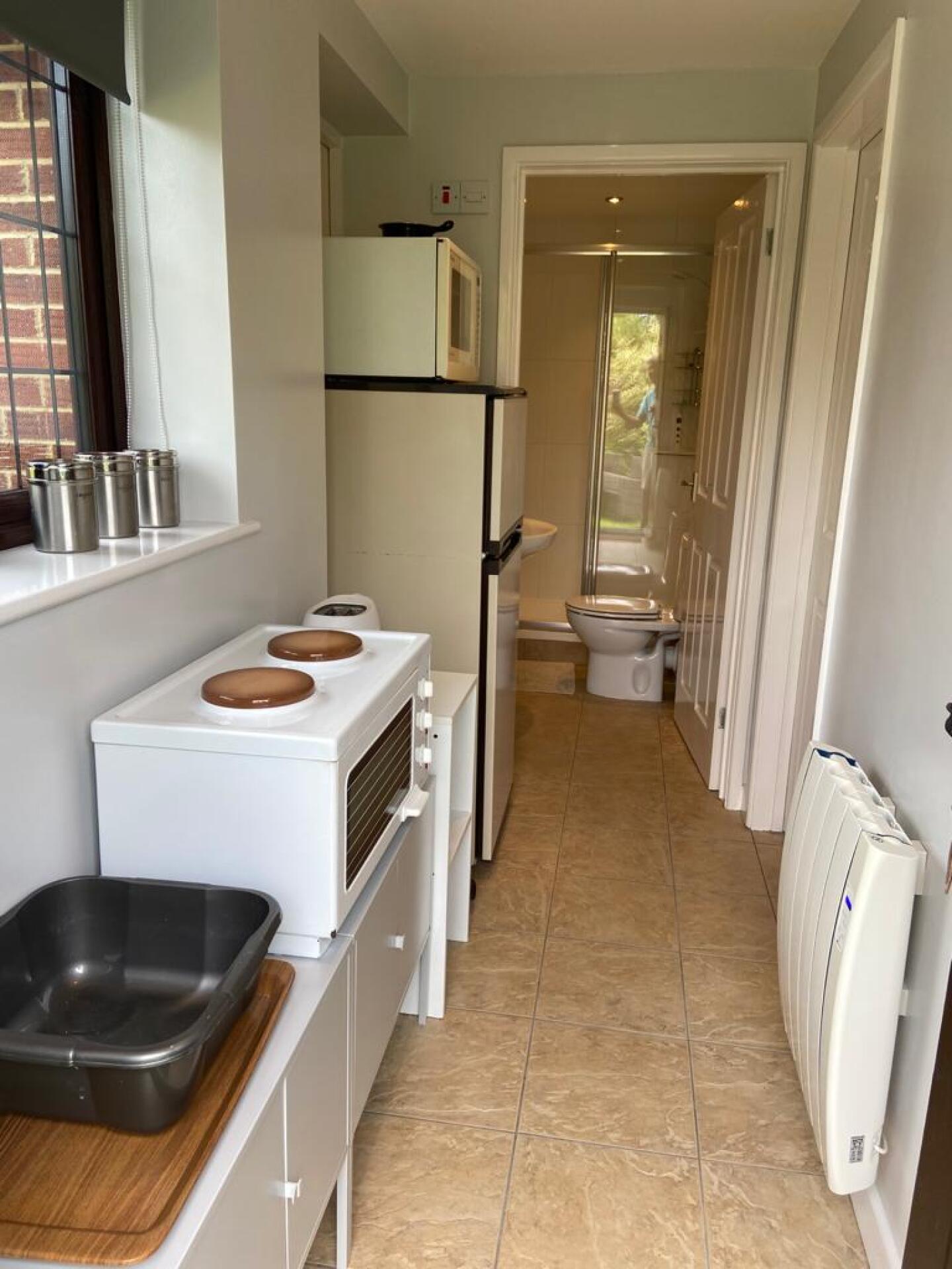 Detached annex with private south facing decking in a quiet residential area in Ringwood available for **MONDAY TO FRIDAY LET ONLY**. The room has a double bed, 3 piece suite, combination micro oven, electric grill & hob, free sat tv, wifi & bedroom furniture including wardrobe & chest of drawers. Own shower room & entrance hall. We are a 2 minute drive from A31 (20 mins from Poole & Southampton).
