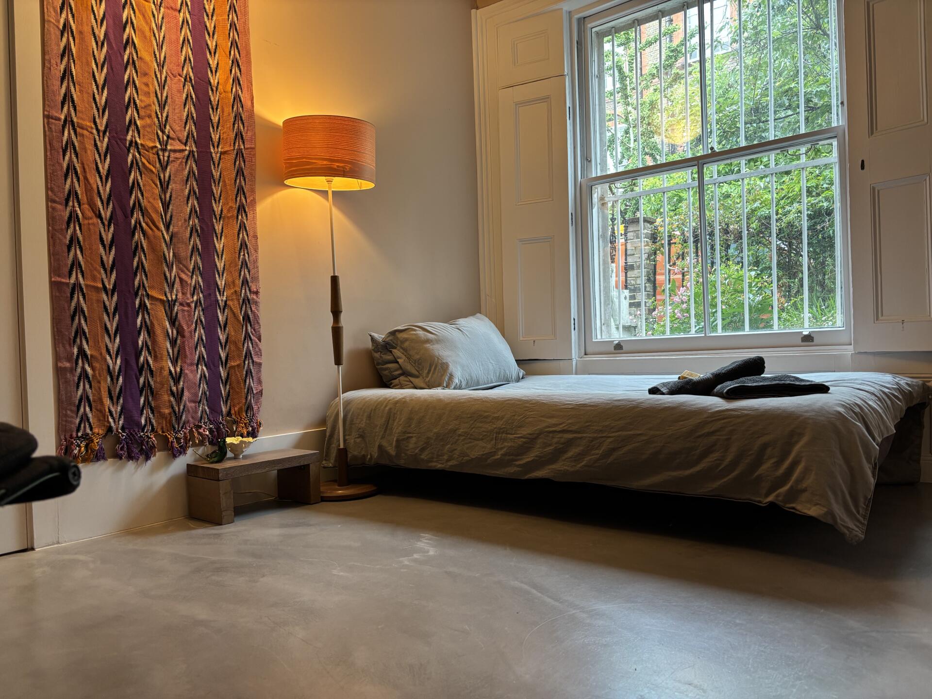 This is a beautiful, stylish, immaculate and unique room, with a minimalist touch, on the ground floor of an artist's/fiction author's Victorian house in Islington. Extremely tranquil, peaceful environment. You benefit from micro-concrete floors and underfloor heating. The walls are a soft plaster-pink. Monday - Friday ideal but will consider other.