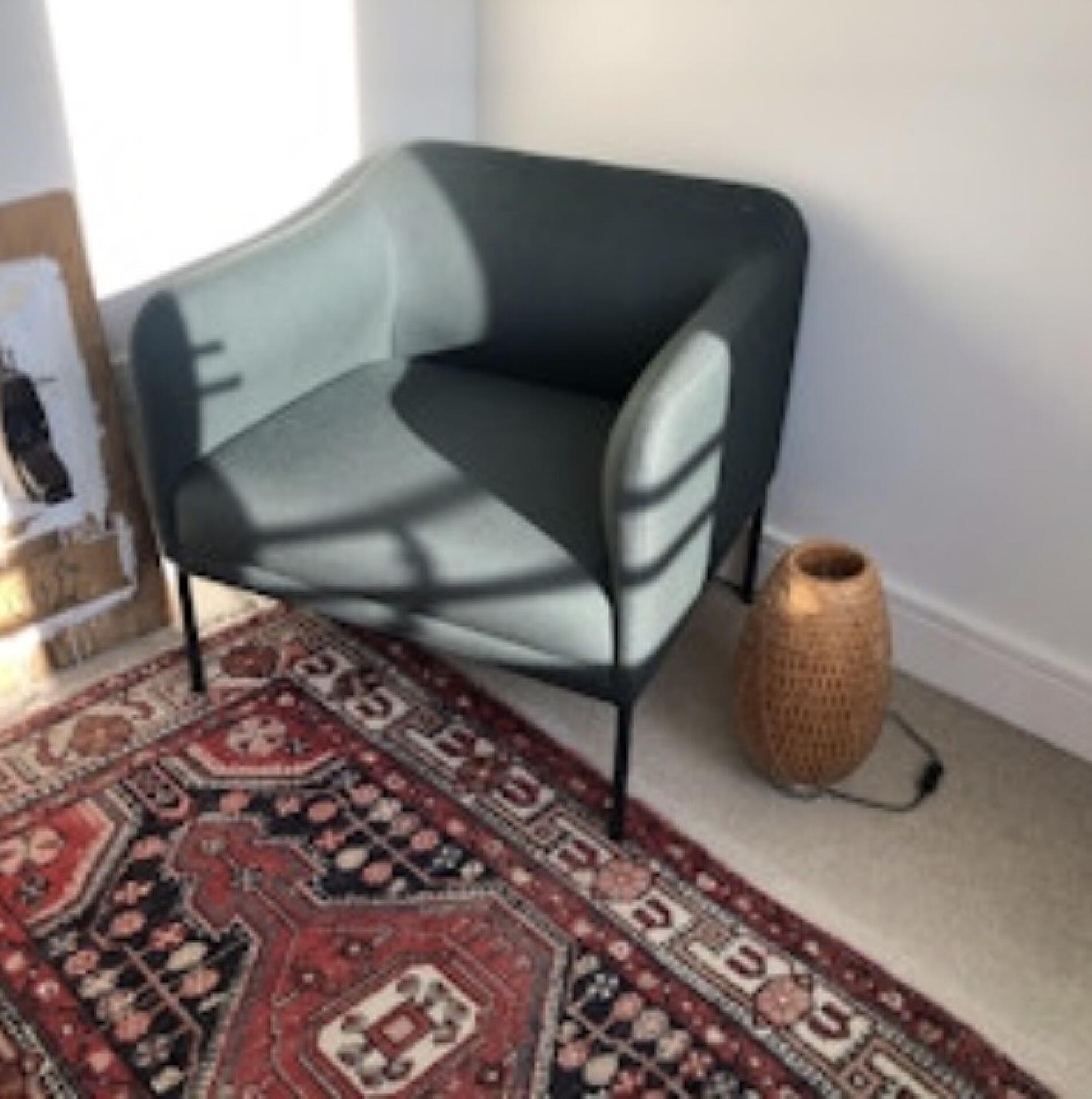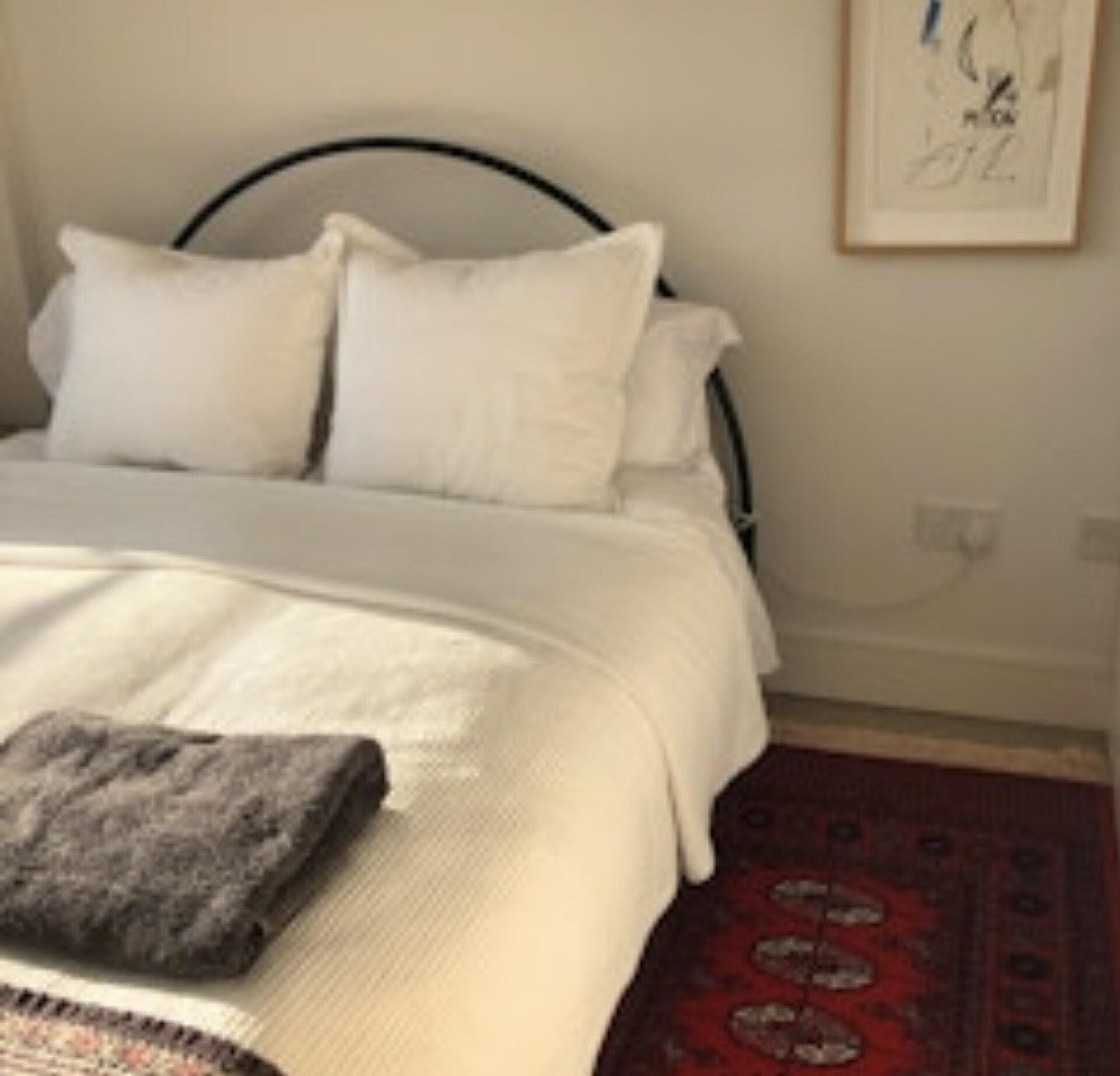 Light and bright room in a very quiet location. King sized bed. Flooded with early morning sunshine on a sunny day! Large arm chair. Shared bathroom.